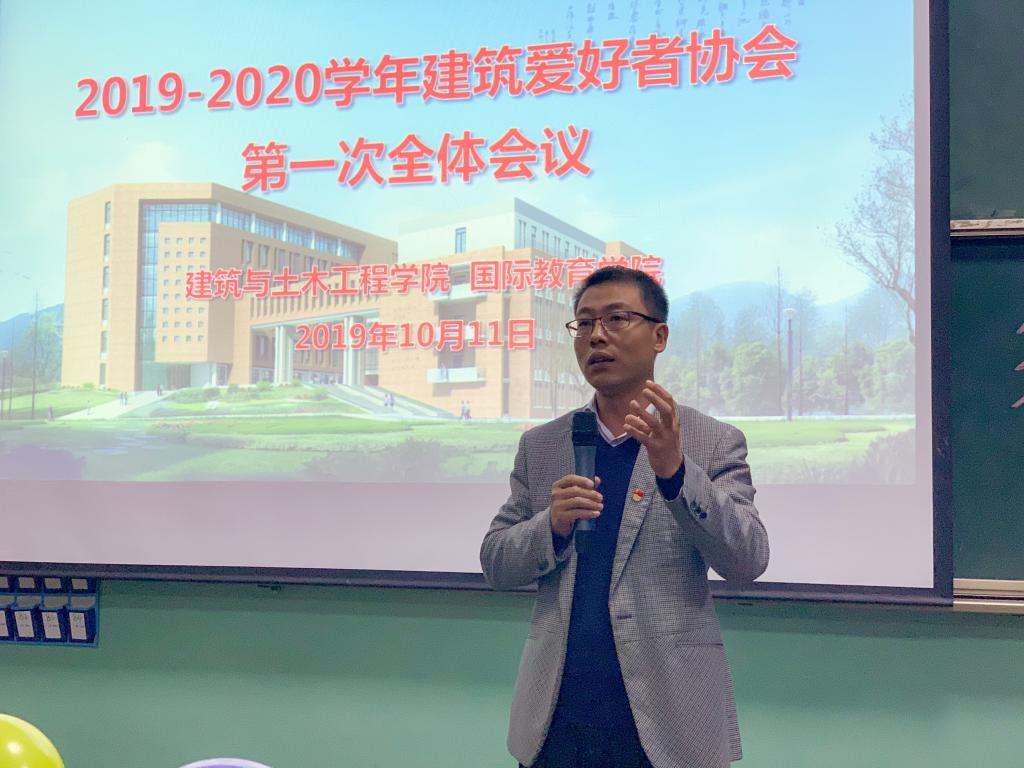 10月11日晚,beat365亚洲体育官方网站建筑与土木工程公司与beat365亚洲体育官方网站共建社团——建筑爱好者协会第一次全体会议在教二楼第五阶梯教室召开。建筑与土木工程公司党委副书记方明科、beat365亚洲体育官方网站党委副书记姚新春、社团指导老师张伟、建筑与土木工程公司团委书记张晓博、beat365亚洲体育官方网站团委老师许孟杨、社团主要员工干部以及2019级新成员代表参加了会议。会议由协会新闻信息部干事伊梦主持。