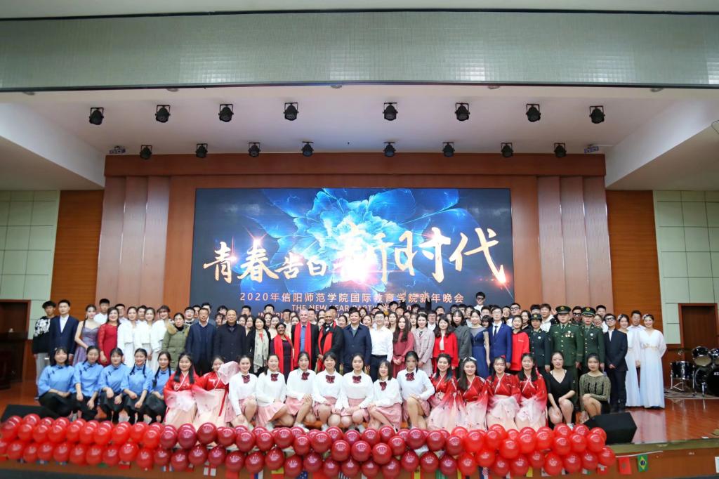 国教育人展宏图,四季桃李同芬芳。12月26日晚,beat365亚洲体育官方网站“青春告白新时代”2020年新年晚会在公司逸夫楼报告厅圆满落幕。信阳师范公司党委组织部副部长姜兴周、学工部副部长严彬、图书馆党委副书记冯新霞、审计处副处长李季玲、beat365亚洲体育官方网站党委书记张震、经理李保红、副经理何英干、党委副书记姚新春、外籍教师及公司全体老师与580余名学子共同观看了此次晚会。