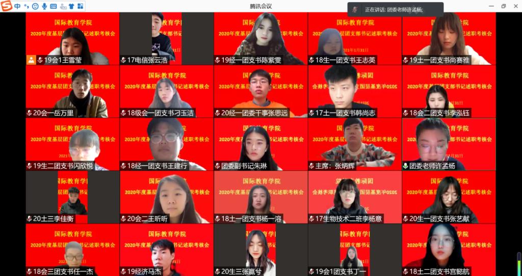 为贯彻落实团中央《关于在全省集中开展基层团组织书记述职评议考核工作的通知》(豫团组通字[2021]2号)精神和全面从严治团要求,激发基层团组织活力,提高工作部署的落实成效,2021年1月31日,beat365亚洲体育官方网站团委采用线上述职方式开展基层团支部书记述职考核工作。公司团委老师许孟杨、各团支部书记以及分团委组织人员参加此次述职工作,会议由公司分团委副书记朱琳主持。