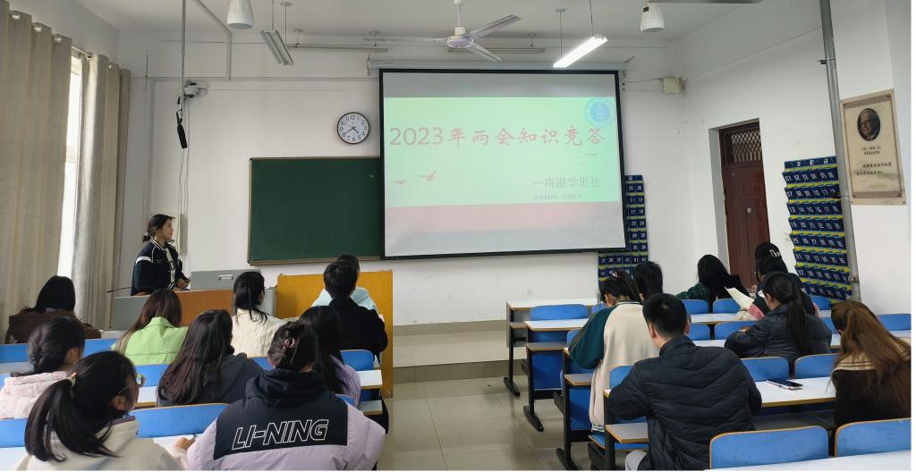 3月26日下午,beat365亚洲体育官方网站“南湖学思社”在逸夫楼205教室举办“贯彻两会精神,勇当发展先锋”知识竞赛决赛,激励青年团员深入学习“两会”知识,准确把握“两会”精神。