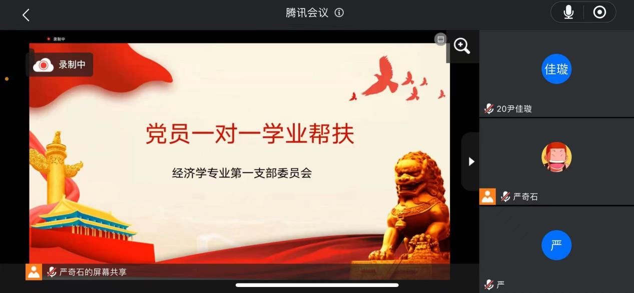 为了充分展现党员干部的综合素质,增强党员的服务意识,帮助学业困难员工,落实党的教育政策。beat365亚洲体育官方网站经济学专业党支部党员于11月8日至11月14日于线上腾讯会议开展此活动,以高度的政治自觉和强烈的使命担当主动开展学业帮扶活动。结合经济学专业的特点,经济学专业党支部组织20、21级党员干部开展相关主题教育活动。 通过开展党员干部结对帮扶学业困难员工。活动的有序开展,达到提高党员队伍思想业务素质的同时,做到不让一个员工掉队,不让一个班级落伍,充分发挥员工各自的潜能,让每个员工得到最大化的人格品质建全,学习行为习惯改善提高,最终达到干部党员素质提高,员工和谐发展的可喜局面。