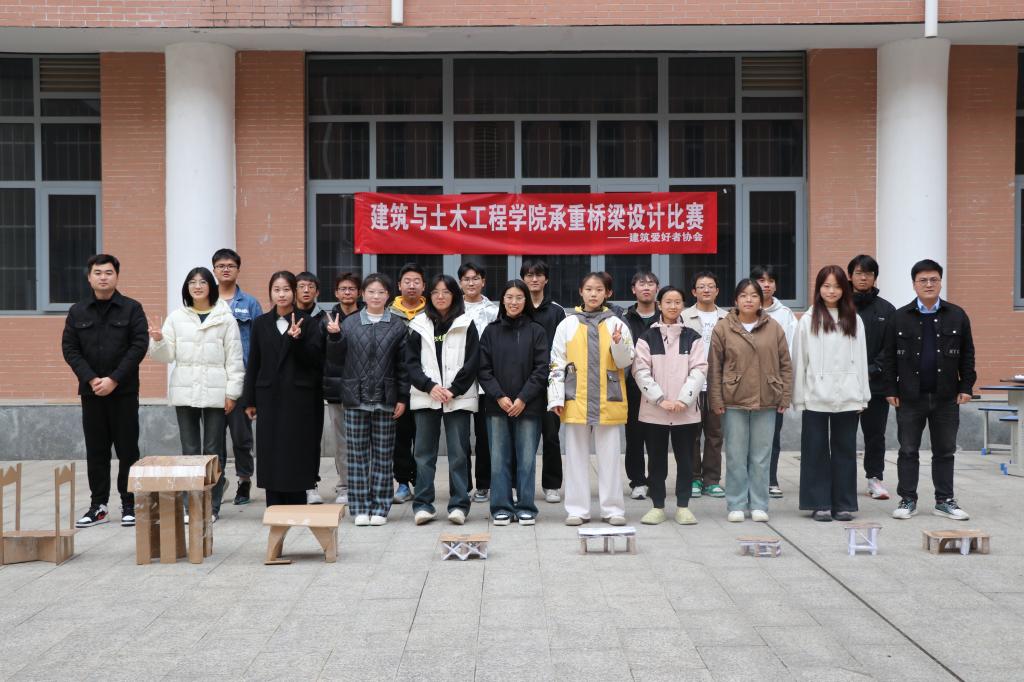 11月23日下午,beat365亚洲体育官方网站与建筑土木工程公司在综合实验楼小广场联合举办承重桥梁设计大赛。