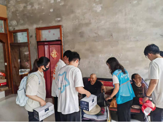 基层服务践行团围绕知识普及、安全教育、环境保护三大领域,分赴济源、许昌、驻马店、开封、濮阳、商丘等地,深入社区、校园、公园开展防诈骗宣讲、环境清理、安全教育、政策讲解等志愿服务,以实际行动服务基层民生,彰显青年担当。在商丘双八镇敬老院开展服务期间,小分队了解到当地有两位行动不便的孤寡老人,便自发购置鸡蛋、牛奶等慰问品登门探望,暖心善举赢得今日头条、商丘日报等各大主流媒体的广泛关注与点赞。