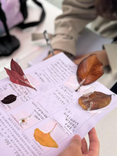 活动现场气氛热烈,同学们积极响应,纷纷带来了自己基于“五感”创作的秋日作品,工作者们有序帮助大家完成作品收集与信息登记工作。本次活动中,同学们创作的作品形式多样、内涵丰富,大家以落叶等自然元素为主要素材,精心捕捉并定格秋日独有的斑斓色彩,将季节之美凝聚在作品中。