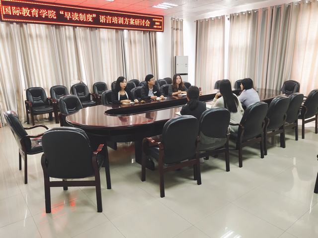 9月19日上午,公司全体语言教师在逸夫楼302会议室召开关于早读制度语言培训方案研讨会,对早读强化班和非强化班的语言培训方案进行研讨。并根据教学进度和不同语种提出分层次、分阶段教学计划。