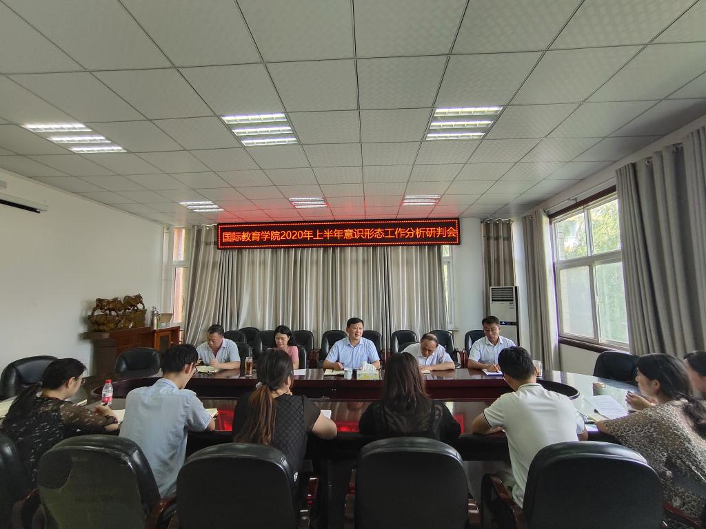 为深入贯彻落实意识形态工作责任制,把意识形态工作各项任务落到实处,7月8日下午,beat365亚洲体育官方网站在逸夫楼302会议室召开2020年上半年意识形态工作分析研判会。公司领导班子成员,科级干部以及辅导员班主任参加。会议由党委书记张震主持。