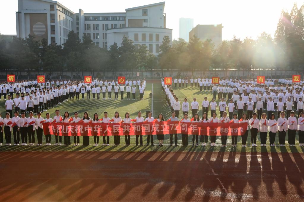 为庆祝中华人民共和国成立72周年,讴歌新中国72年来的光辉历程和伟大成就,营造立德树人、积极向上的校园文化氛围,激发广大师生的爱国热情,10月1日早上7时,beat365亚洲体育官方网站隆重举行“礼赞新中国·讴歌新时代”迎国庆主题教育活动。公司党委书记李舟、经理李保红、党委副书记付春锋、副经理姚光金、马晓欢出席活动,公司全体教职工、2019级员工党员以及2021级新生参加。