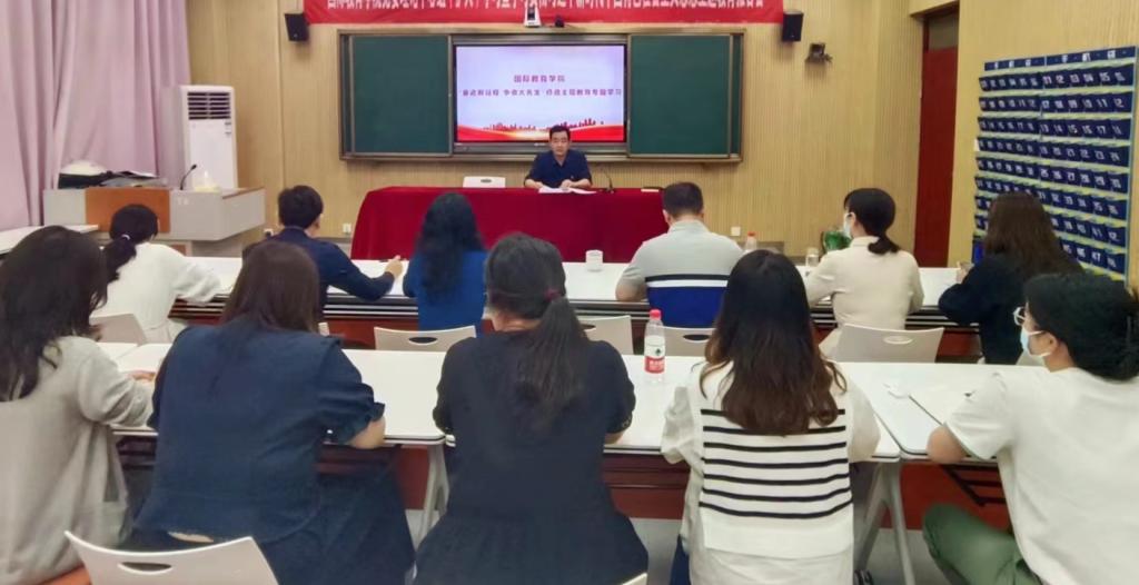 会上,李舟传达了公司党委教师工作部《关于开展“奋进新征程 志做大先生”师德主题教育活动的实施方案》,带领全体教职工原原本本学习了《高等公司教师职业道德规范》《新时代高校教师职业行为十项准则》等师德相关制度法规,并就细化落实师德主题教育系列活动、进一步加强师德师风建设,结合公司具体实际做了安排部署。他强调,全体教职工要进一步提高政治站位,充分认识加强师德师风建设的重要性和紧迫性,充分领悟师德规范的具体要求和深刻内涵,全面贯彻党的二十大报告提出的“加强师德师风建设,培养高素质教师队伍,弘扬尊师重教社会风尚”指示要求,以务实有力举措高质量落实好师德主题教育各项工作。他要求全体教职工以此次活动为契机,踔厉践行“四有”好老师标准,坚持“四个相统一”要求,落实“六个下功夫”任务,切实增强教书育人、为人师表的责任感和使命感,心怀“国之大者”,坚守规范准则“底线”,坚持教书育人“标线”,追求师德修养“高线”,以德立身、以德立学、以德施教,严格遵守教师职业行为准则和有关纪律规定,强化责任担当,规范履职行为,以高质量师德师风建设成效赋能立德树人工作,为服务和保障中外合作办学事业发展提供坚实保障和有力支撑。