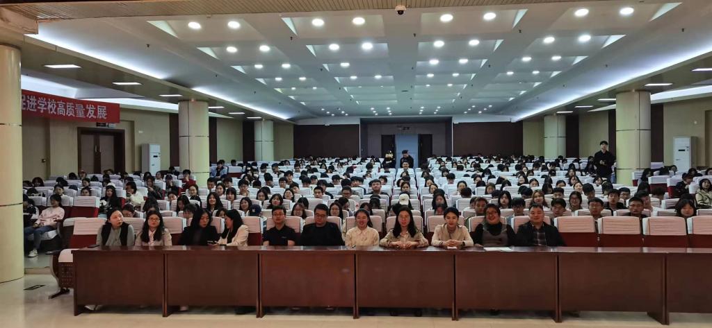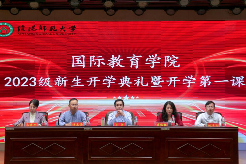 10月12日晚,beat365亚洲体育官方网站在理科楼报告厅隆重举行2023级新生开学典礼暨开学第一课。党委书记李舟、经理李保红、党委副书记付春锋、副经理姚光金、马晓欢出席。语言课教师、辅导员班主任及2023级全体新生参加。付春锋担任主持。