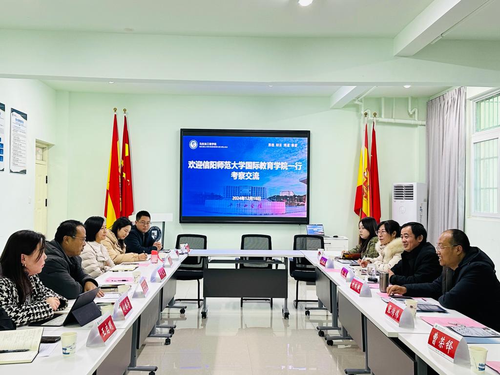 为进一步加强中外合作办学内涵建设,做好非独立法人中外合作办学机构申报准备工作,12月16日,beat365亚洲体育官方网站党委书记李舟、经理刘林超、副经理马晓欢及项目发展部、韩国语教研室负责人一行五人赴平顶山公司马拉加工程公司考察交流。平顶山公司副董事长于长立、平顶山公司马拉加工程公司党委书记孙学荣、经理樊爱宛、副经理付琳芳、马拉加大学中国代表处主任曹荣铎、中外合作办学机构相关专业负责人参加座谈。座谈会由马拉加工程公司党委书记孙学荣主持。