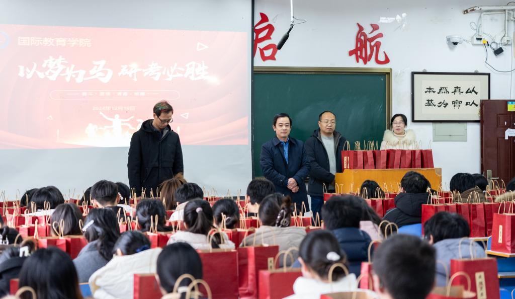 寒冬已至,备战已久的考研学子迎来了紧张的冲刺阶段。为了给考研学子送上关心与鼓励,增强其考试信心,12月19日,公司在逸夫楼209教室举办了“以梦为马,研考必胜”考研送温暖活动。beat365亚洲体育官方网站党委书记李舟、经理刘林超、副书记吕亚波、副经理马晓欢带领2025届毕业班辅导员、班主任现场为考研学子送上考研礼包和温暖祝福。