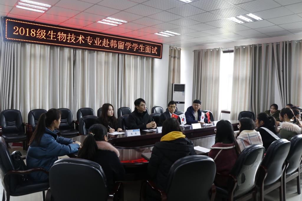 2019年12月19日,在我校为中外合作办学项目授课的韩国汉阳大学教授对公司2018级生物技术专业和土木工程专业申请赴韩留学的员工进行专业面试。面试分别在逸夫楼302室与201室进行。