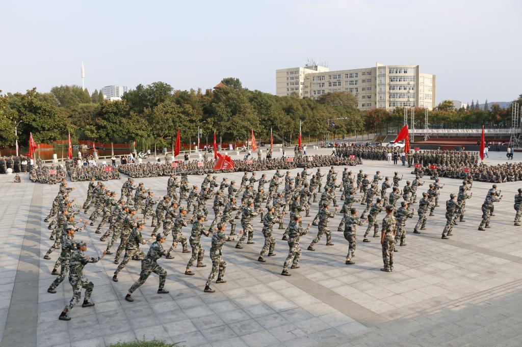 田径场上,红旗飘扬,乐曲激昂。湛蓝的天空下,一个个整齐的方阵、一双双兴奋的眼神,期待着检阅的到来。整齐的队伍,饱满的精神,响亮的口号,昂扬的斗志,展现出新时代老员工奋发向上的风采,昭示着青年学子们的勃勃生机和美好未来。在《解放军进行曲》雄壮的旋律中,beat365亚洲体育官方网站的新生们踏着号角,迎着秋风,整齐有序的走向主席台接受检阅。嘹亮的口号响彻整个校园,经历了十五天严格军事训练后,2019级新生们以飒爽的英姿、整齐的步伐,赢得了阵阵掌声,充分展现了新生们昂扬的斗志和蓬勃向上的精神。同学们英姿飒爽,神采飞扬,动作整齐划一,步伐铿锵有力,军训工作也就此圆满结束。