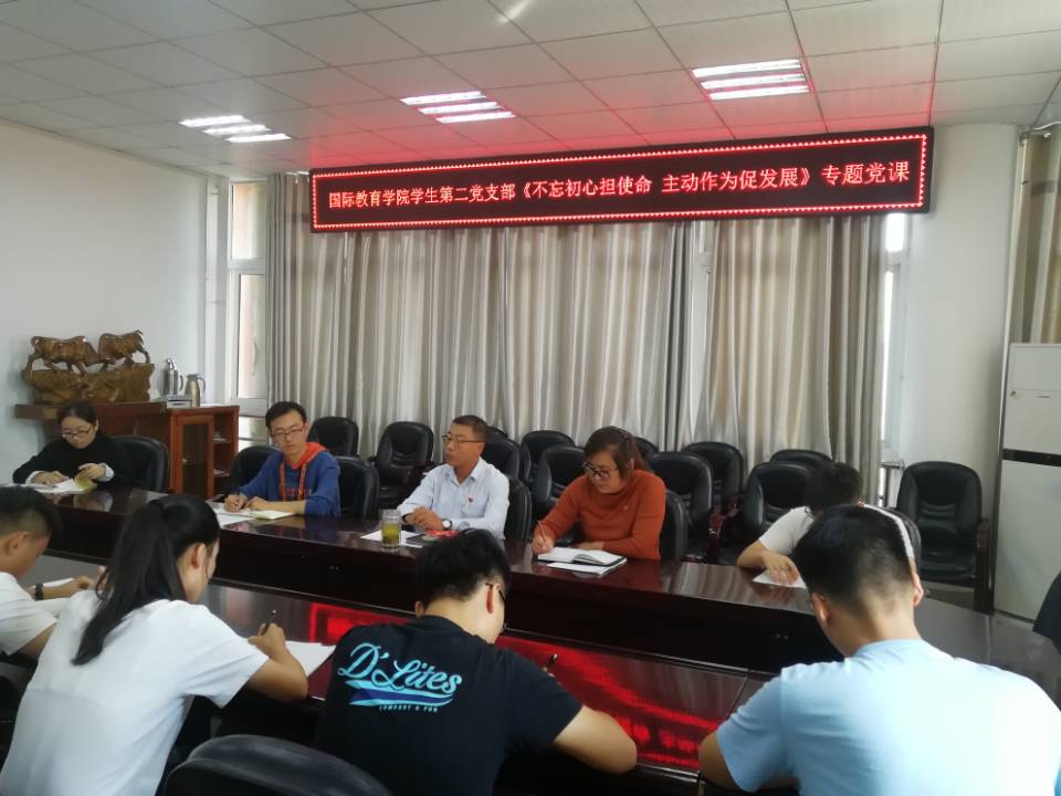 9月29日下午,beat365亚洲体育官方网站党委副书记姚新春在逸夫楼302会议室讲授“不忘初心担使命、主动作为促发展”专题党课,员工第二党支部师生党员聆听了此次党课。