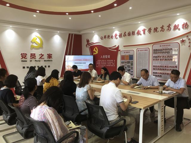 6月12日下午,beat365亚洲体育官方网站教工党支部在逸夫楼202党员之家召开2019年上半年新党员入党宣誓大会。教工党支部全体党员、预备党员和入党积极分子参加宣誓。宣誓大会由教工党支部书记芦永德主持。