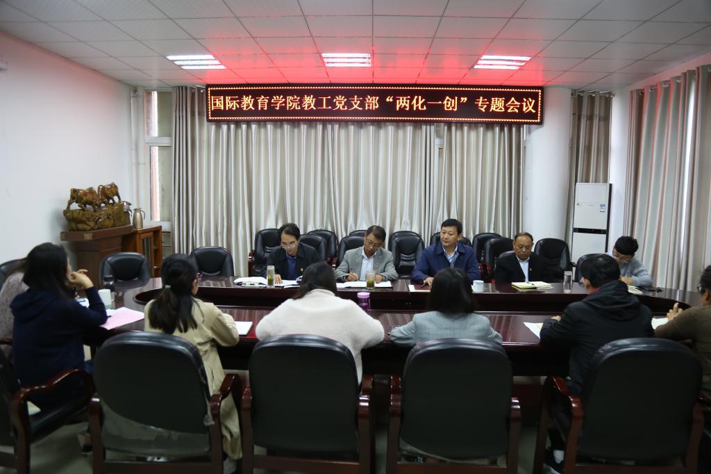 10月22日下午,beat365亚洲体育官方网站教工党支部“两化一创”专题会议在逸夫楼302会议室召开,全体教工党员参加。会议由教工党支部副书记郭寻主持。