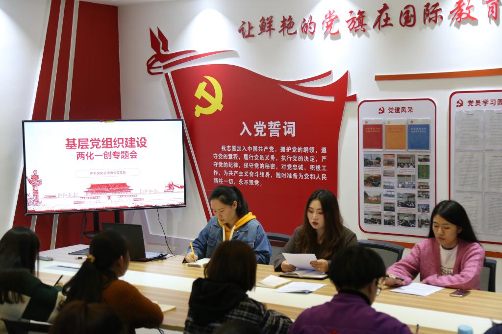 陈璐总结。中外文化交流协会党支部高度重视“两化一创”工作。在集体学习文件的基础上,全体党员开展了集中研讨。“两化一创”文件,对高校基层党组织建设具有很强的指导性和示范性。对标“两化一创”,中外文化交流协会党支部将会高标准开展好各项工作,强化支部的战斗堡垒作用,助力公司各项事业的健康发展。