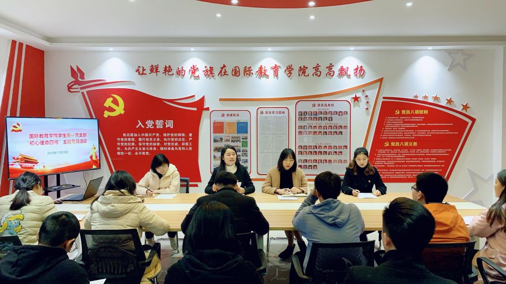 支部书记余艳楷传达了关于开展党员“初心使命四问”主题党日活动的文件精神;组织委员张雨雪带领全体党员重温入党誓词,回忆入党初心;全体党员围绕“入党初心是什么、党员使命担什么、对照先进差什么、立足本职做什么”进行发言,开展了“初心四问”交流研讨。