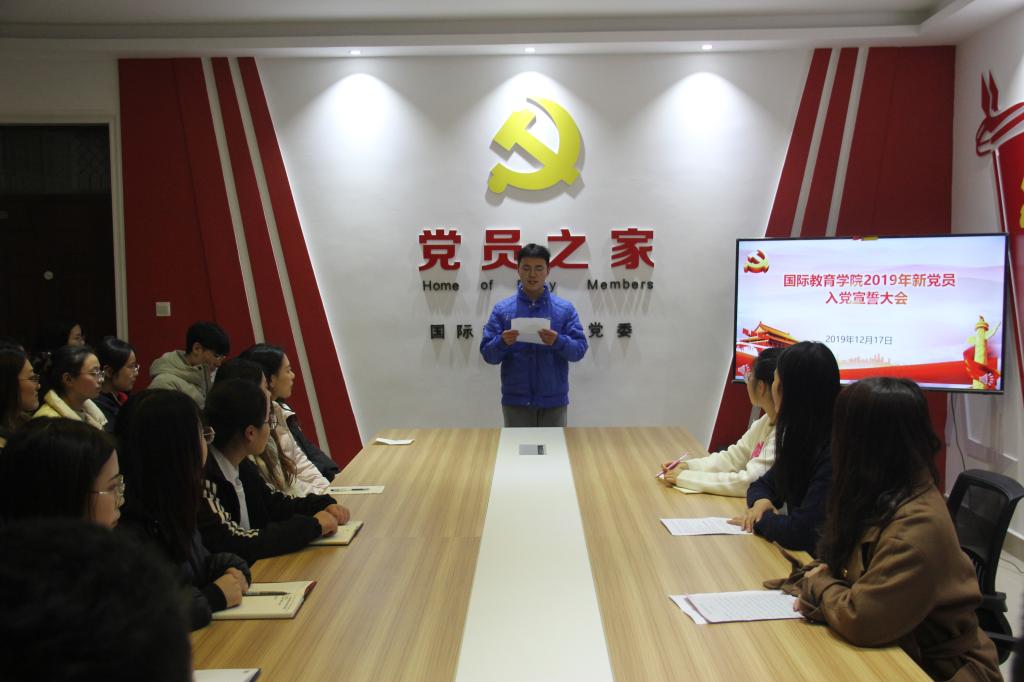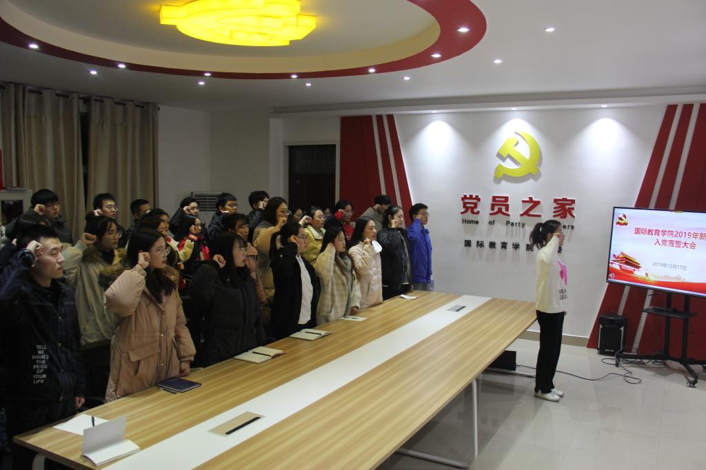 12月17日下午,beat365亚洲体育官方网站在逸夫楼202党员之家召开了2019年下半年新党员入党宣誓大会。员工第一党支部、员工第二党支部、中外文化交流协会党支部支部书记以及新发展入党的45名党员参加。会议由余艳楷主持。