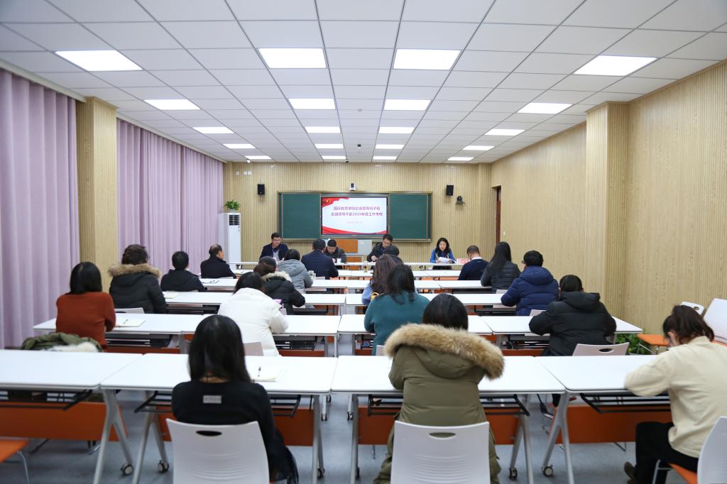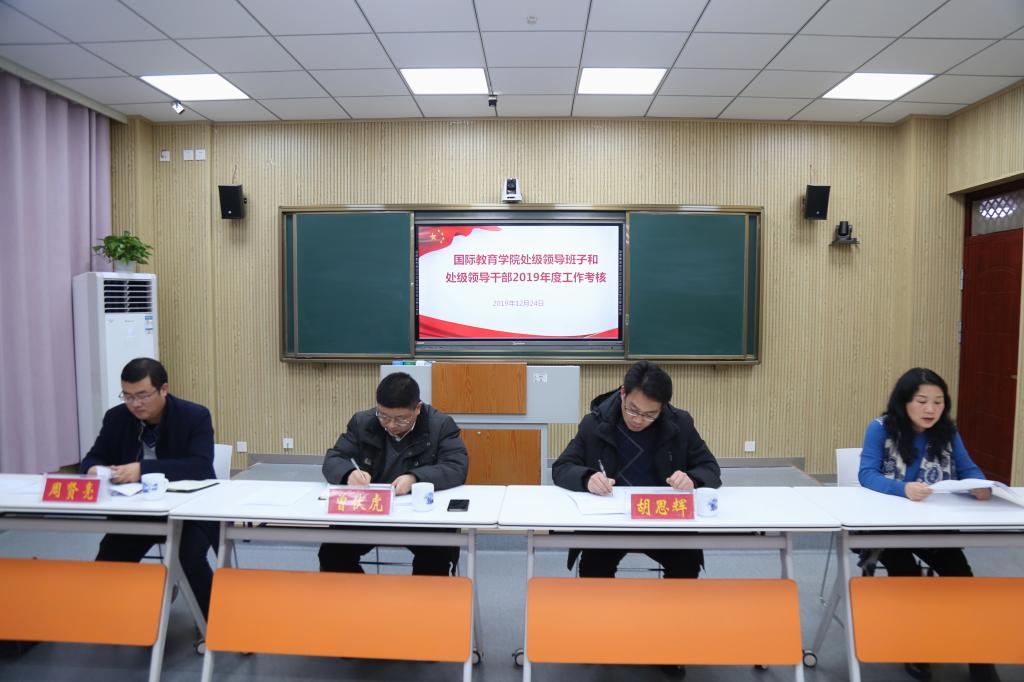 12月24日下午,国际教育学院2019年度处级领导班子和处级领导干部考核工作会在逸夫楼201教室召开。校第二考核组组长、公司党委委员、党委统战部部长曾伏虎,考核组成员、校纪委办公室副主任胡思辉,公司党委组织部干部科科长周贤亮出席指导考核工作会。公司全体教职工参加。会议由公司党委书记张震主持。