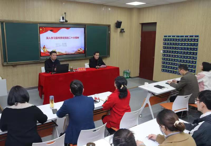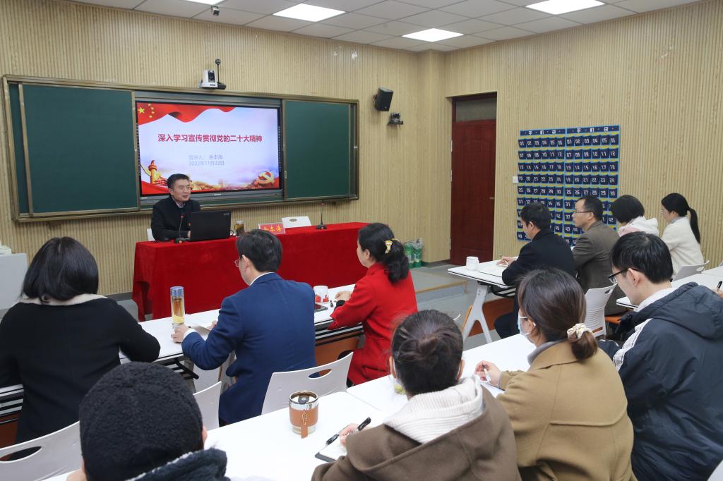 11月22日下午,副董事长余本海在逸夫楼201为beat365亚洲体育官方网站师生宣讲党的二十大精神。公司党委理论学习中心组成员和师生党员代表聆听了宣讲。宣讲会由公司党委书记李舟主持。